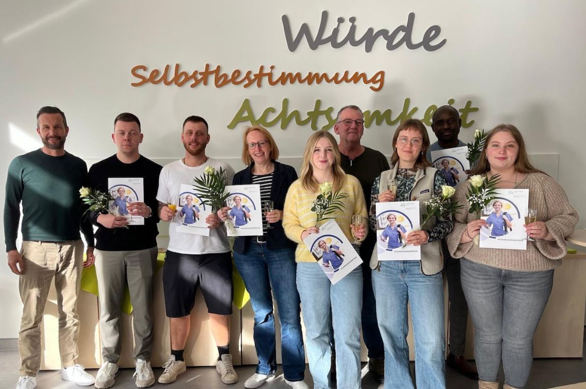 Eine bestmögliche Versorgung älterer Patientinnen und Patienten gelingt dann, wenn viele Fachbereiche Hand in Hand arbeiten. Genau darauf zielt eine vom Bundesverband Geriatrie (BVG) entwickelte Fachfortbildung ab, an der jetzt 8 Mitarbeitende des St. Marien-Hospitals Düren erfolgreich teilgenommen haben. Die offiziell anerkannte Weiterbildung folgt klar definierten Qualitätsstandards und schließt mit einer beim BVG registrierten Prüfung ab. Ihr Ziel: das interdisziplinäre Team noch besser auf die besonderen Bedürfnisse älterer Menschen vorzubereiten und das Fachwissen in der Akutgeriatrie kontinuierlich auf höchstem Niveau zu halten.