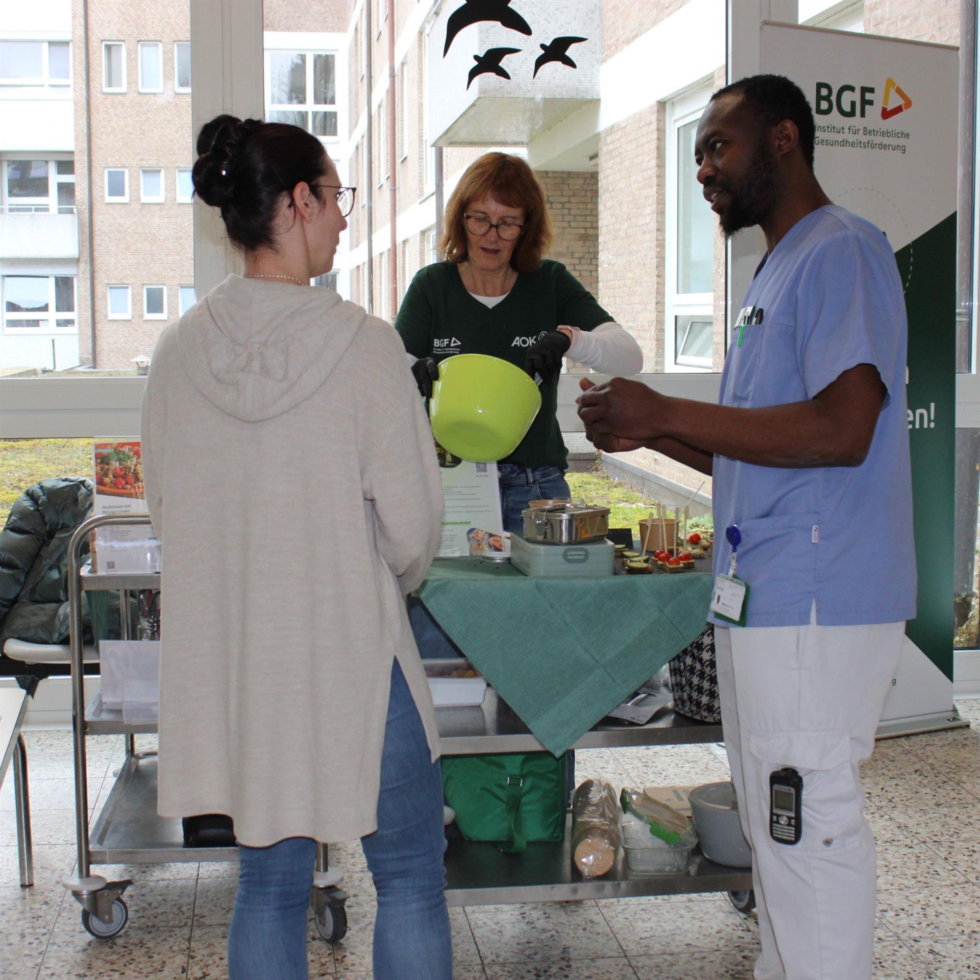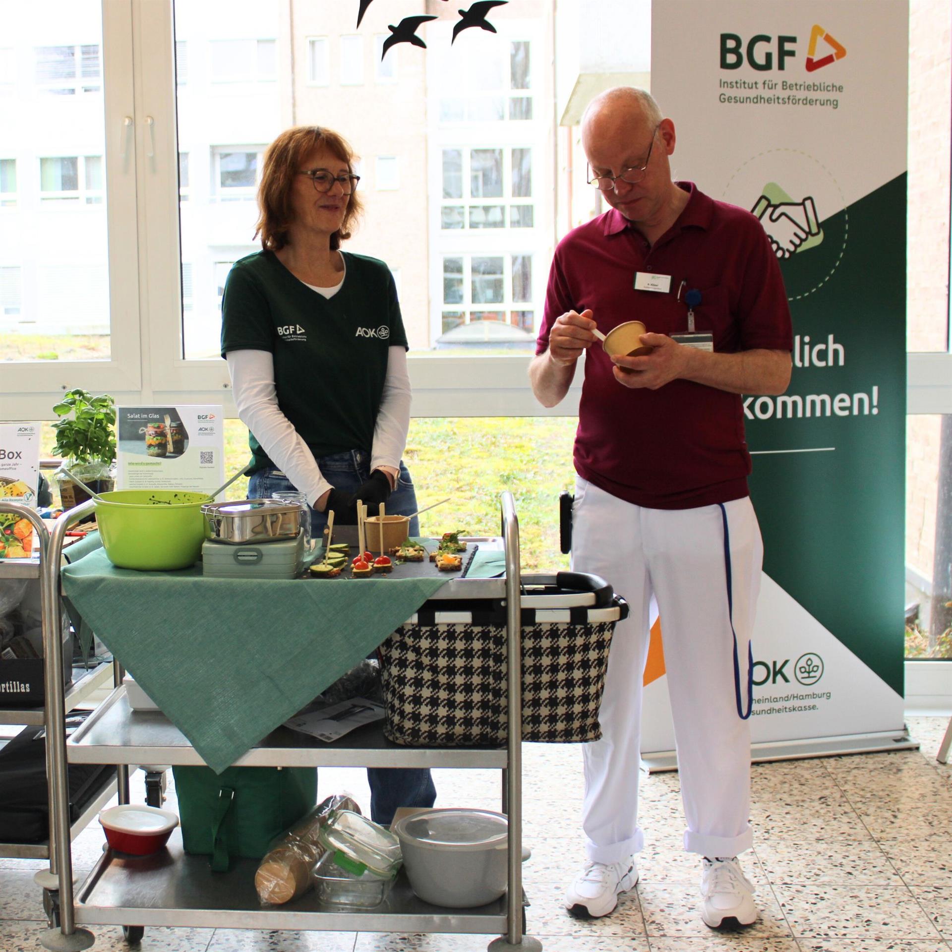 Auch im stressigen Berufsalltag muss leckeres und gesundes Essen nicht zu kurz kommen. Genau das stand im Mittelpunkt unserer Lunchbox-Aktion in den Rur-Kliniken. In Kooperation mit der AOK und der BGF – Institut für betriebliche Gesundheitsförderung konnten sich unsere Teams rund um das Thema „gesunde Verpflegung im Job“ informieren, inspirieren lassen und natürlich auch probieren.